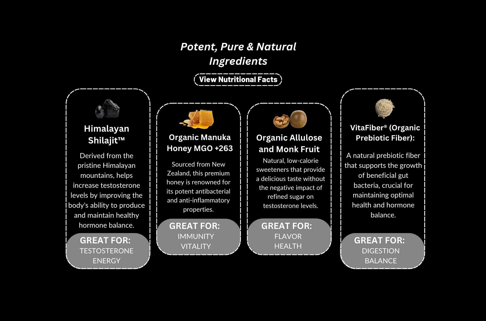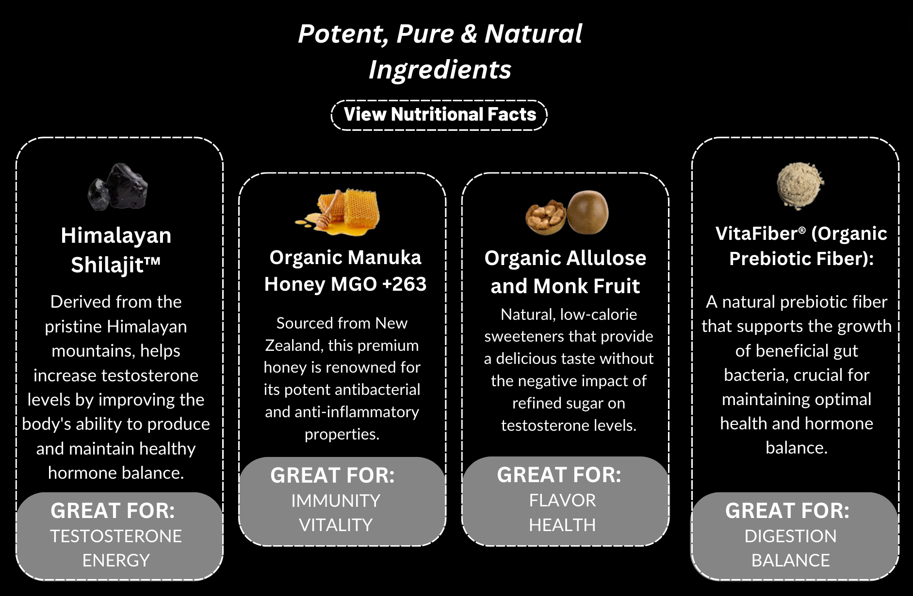 In a clinical trial, male participants aged 45 to 55 were split into two groups: one received a 250 mg dose of purified Shilajit twice daily, while the other received a placebo. After 30 days, those taking purified Shilajit exhibited significantly increased testosterone levels compared to the placebo group.